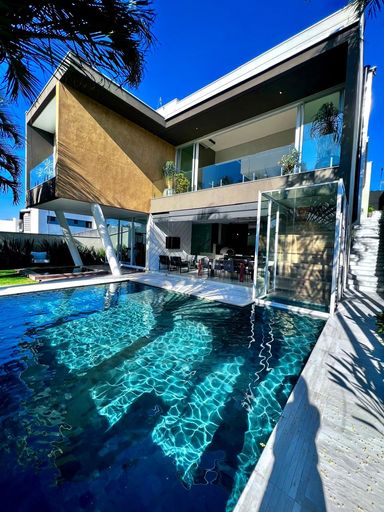 Esta casa conta com 450m² de área total e 275m² de área construída * Sendo 3 suítes com sacada na parte superior, banheira de hidromassagem e closet na suíte máster. * 1 Suíte no térreo, podendo ser reversível para escritório ou sala de TV. * Cozinha, sala de jantar e sala de estar integradas. * Lavabo. * Armários planejados em todos os ambientes. * Ampla área externa com piscina e espaço gourmet. Diferenciais: * 3 suítes da parte superior com ar condicionado quente e frio. * Ar Condicionado cassete, quente e frio de 48000 BTUS que atende toda área inferior. * Fechadura Eletrônica Agende sua visita!