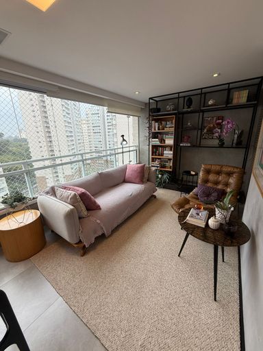 — Varanda Gourmet: Espaço ideal para receber, com churrasqueira a carvão, fechamento em vidro e cortinas instaladas.