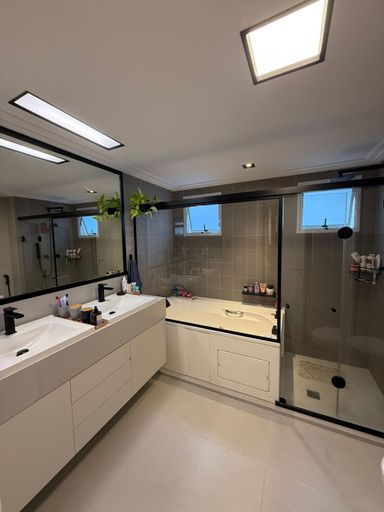 — Banheiros: Total de 05 banheiros (sendo 03 das suítes, 01 lavabo decorado e 01 de serviço). Banheiros das suítes com planejados e box.