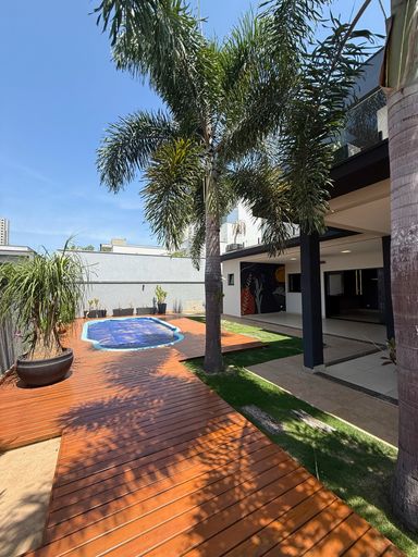 • Área gourmet com churrasqueira, integrada à piscina com deck de madeira, perfeita para momentos de lazer;